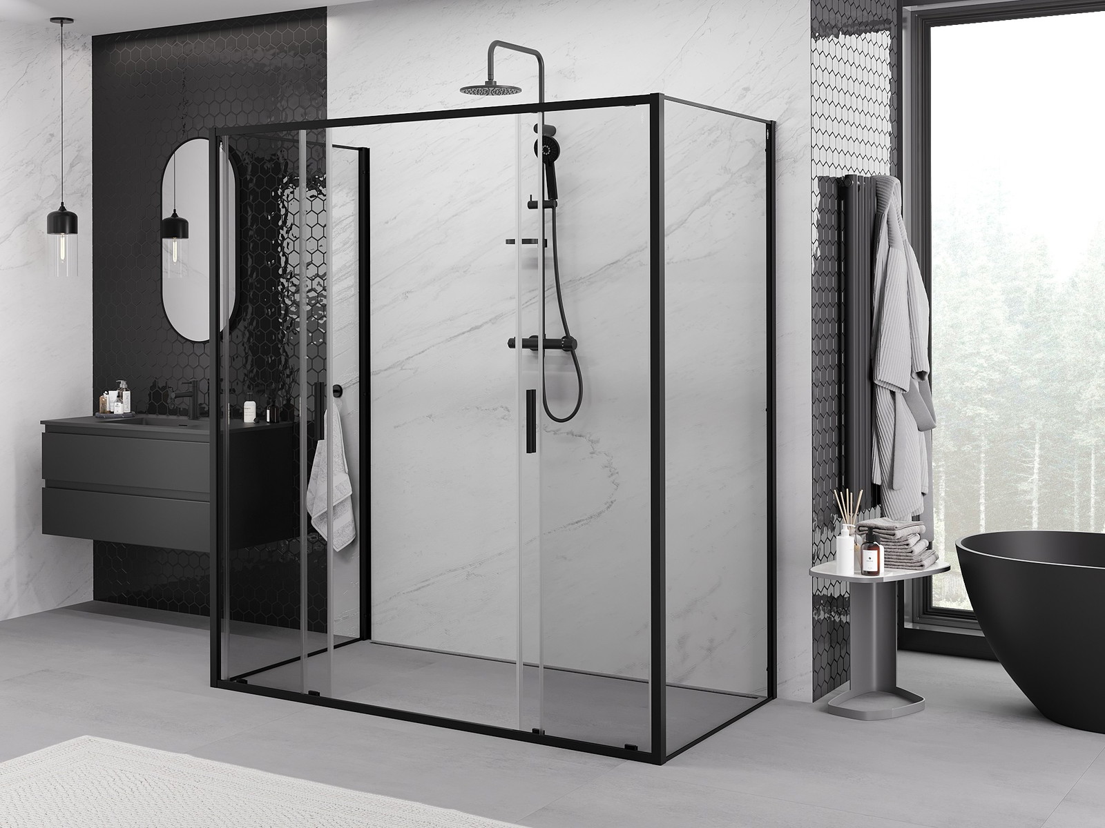 Mexen Exo-3S yra modernus ir minimalistinis dizainu išsiskiriantis trijų sienelių dušo kabina su įspūdingu 180x80 cm dydžiu ir universaliąja montavimo galimybe, todėl tai idealus pasirinkimas bet kokiam vonios kambariui. Stumdomos durys ir skaidrus, grūdintas 6 mm storio stiklas užtikrina ne tik estetinę išvaizdą, bet ir ilgaamžiškumą bei saugumą. Juoda aliuminio profilių apdaila suteikia elegancijos. Danga lengvinanti valymą ir montavimo galimybė ant dušo padėklo arba plytelių yra papildomi privalumai. Mexen Exo-3S suteikia sienos nelygumų korekciją, pločio reguliavimą ir vandens nukreipimo tarpinių komplektą, kas prisideda prie naudojimo patogumo. Galiausiai, aliuminis durų sandarinimo slenkstis ir metalinė rankena užtikrina komfortą ir funkcionalumą.