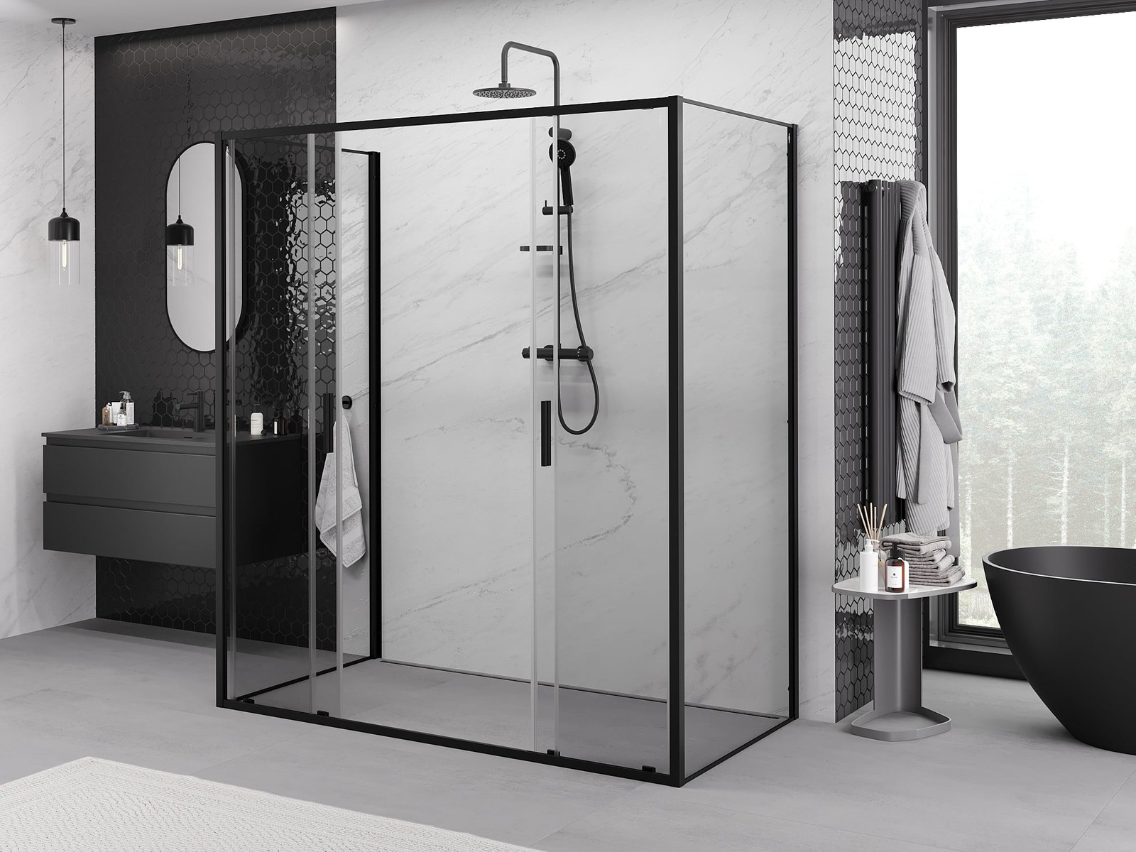 Mexen Exo-3S 3-pusių stumdoma dušo kabina 190 x 95 cm, skaidri, juoda - 8152-190-095-70-00-3S