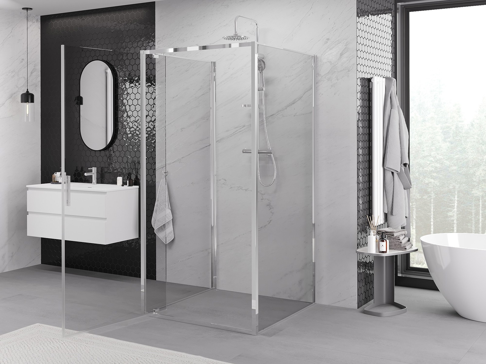 Produktą, atsižvelgiant į poreikius, galima sumontuoti tiek ant dušo padėklo, tiek tiesiogiai ant grindų. Universalus montavimo būdas leidžia pritaikyti produktą įvairių tipų vonios kambariams ir erdvės konfigūracijoms.