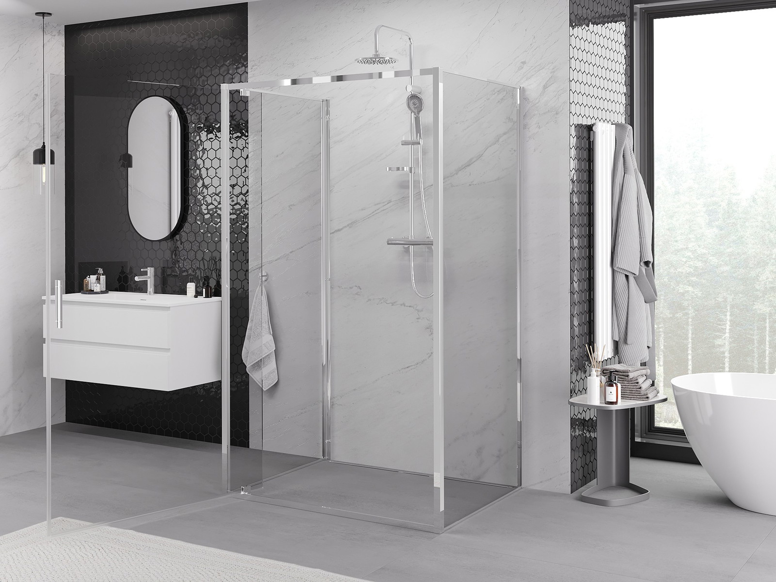 Produktą, atsižvelgiant į poreikius, galima sumontuoti tiek ant dušo padėklo, tiek tiesiogiai ant grindų. Universalus montavimo būdas leidžia pritaikyti produktą įvairių tipų vonios kambariams ir erdvės konfigūracijoms.