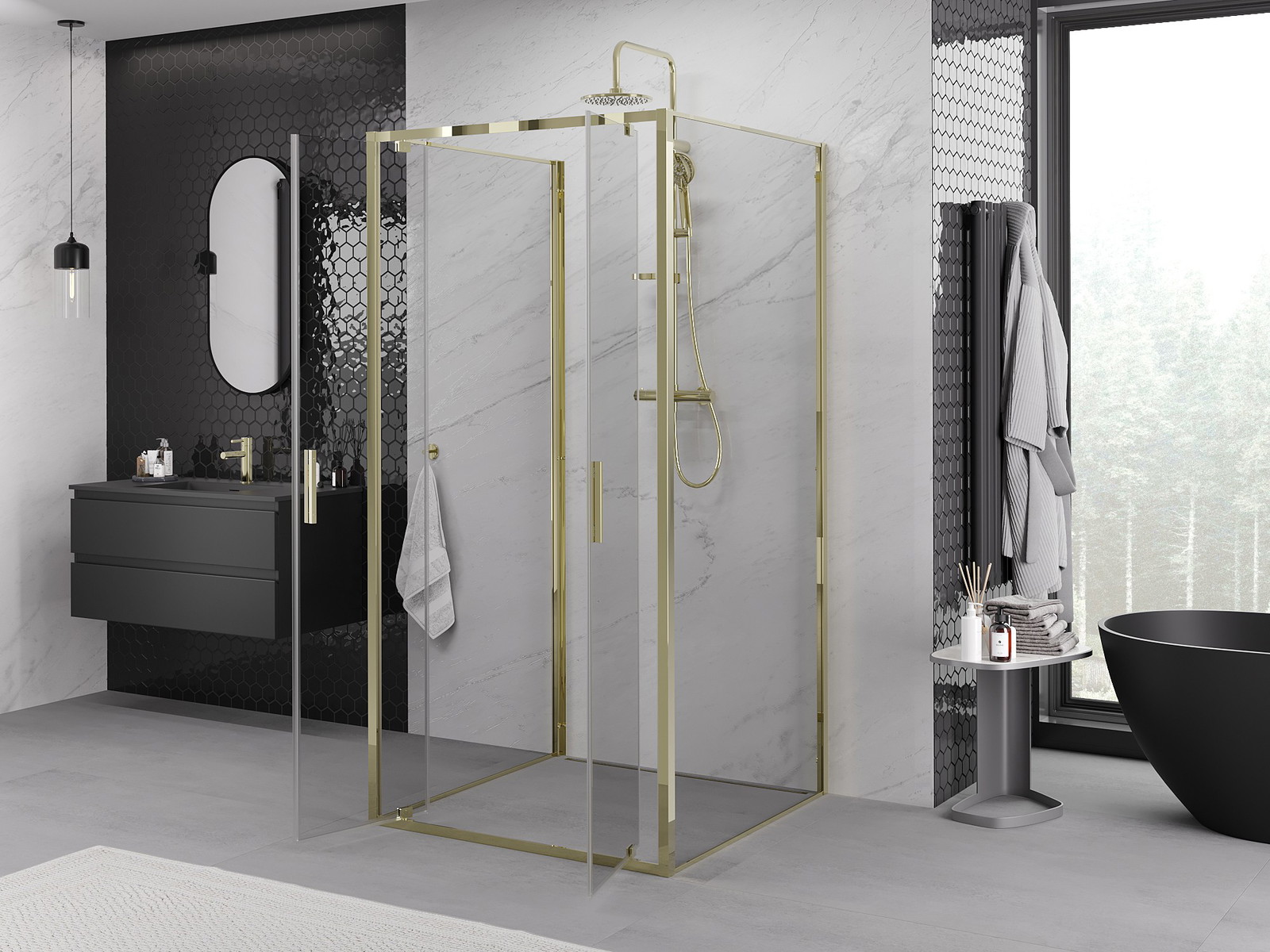 Mexen Exo-3S trijų pusių dušo kabina 90 x 90 cm, permatoma, auksinė - 8182-090-090-50-00-3S