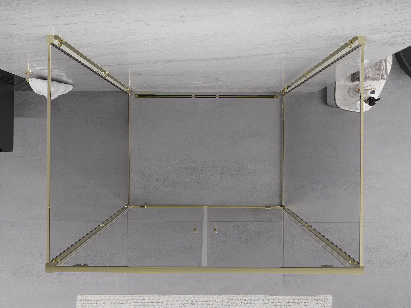 Mexen Exo-3S trijų sienelių atveriama dušo kabina 120 x 100 cm, skaidri, auksinė - 8182-120-100-50-00-3S