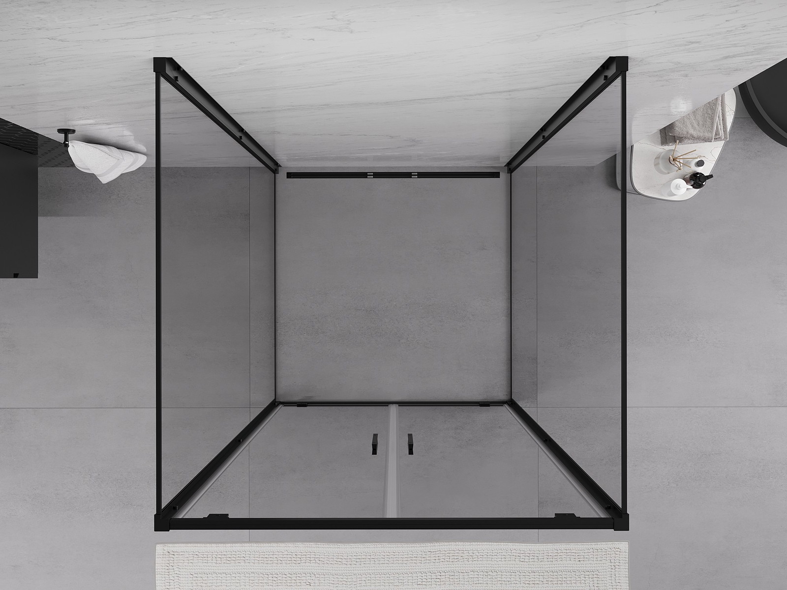 Mexen Exo-3S trijų sienelių atveriama dušo kabina 120 x 120 cm, skaidri, juoda - 8182-120-120-70-00-3S