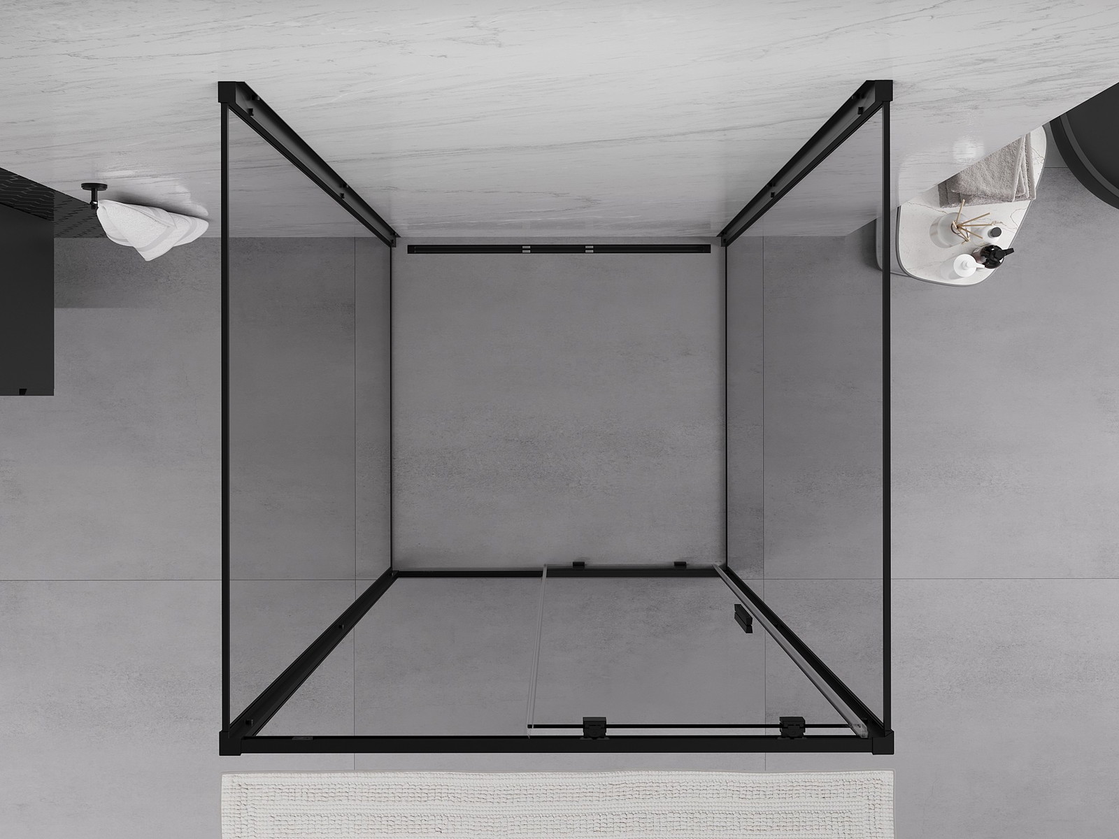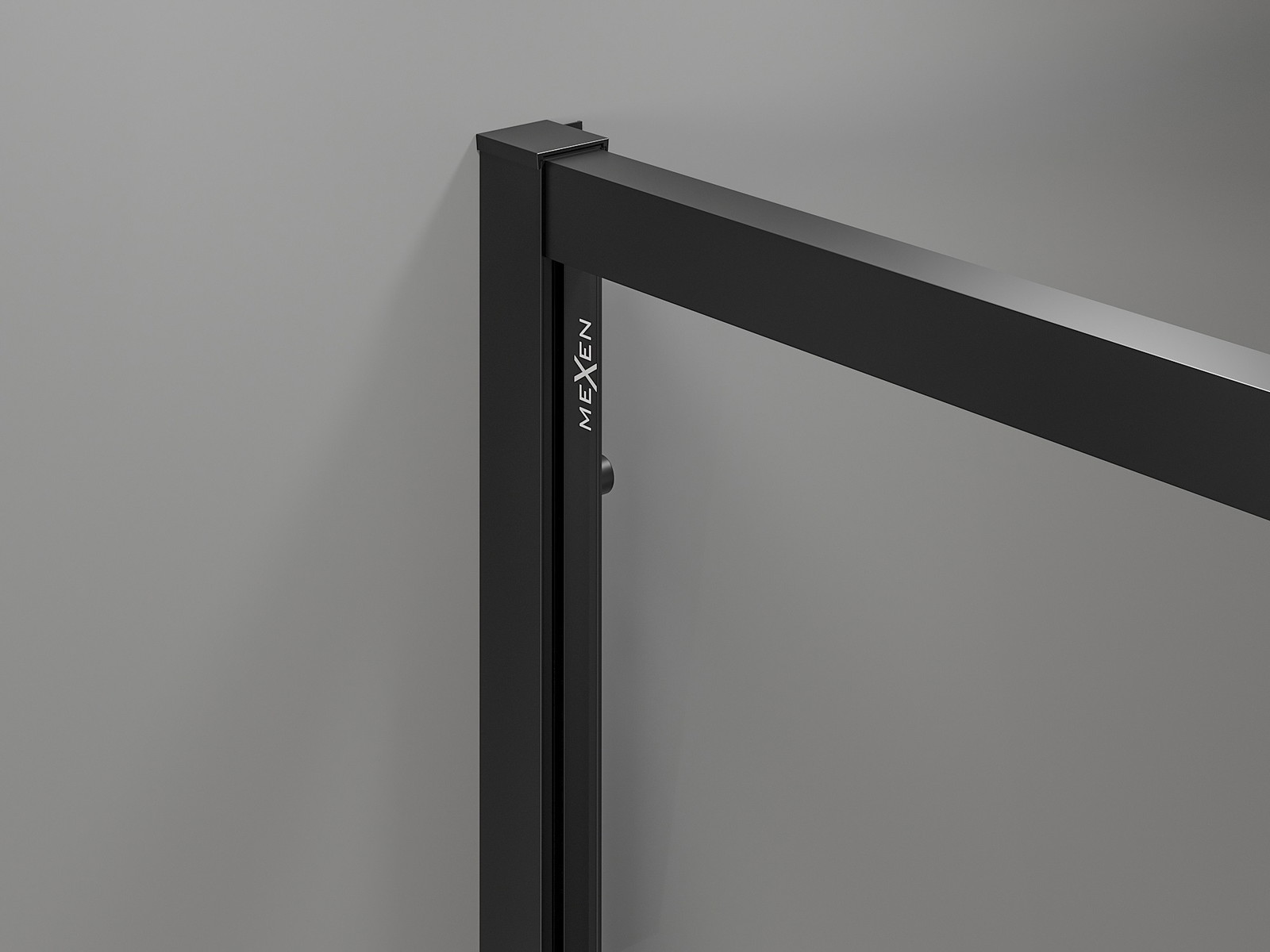 Mexen Exo-3S trijų sienų stumdomos dušo kabina, 100 x 100 cm, skaidri, juoda - 8151-100-100-70-00-3S