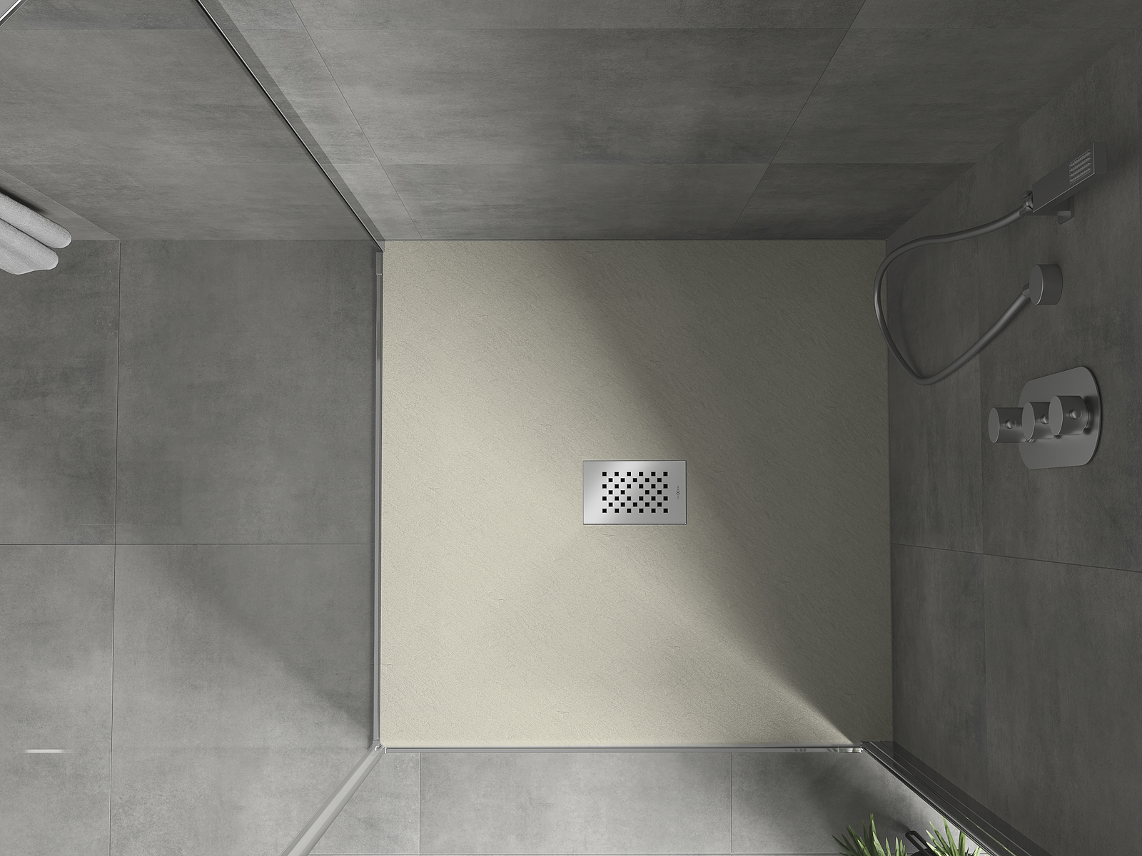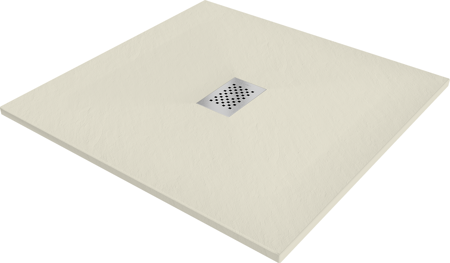 Mexen Hugo kvadratinis dušo padėklas SMC 80 x 80 cm, smėlio spalvos, nerūdijančio plieno maskuotė - 42698080-X
