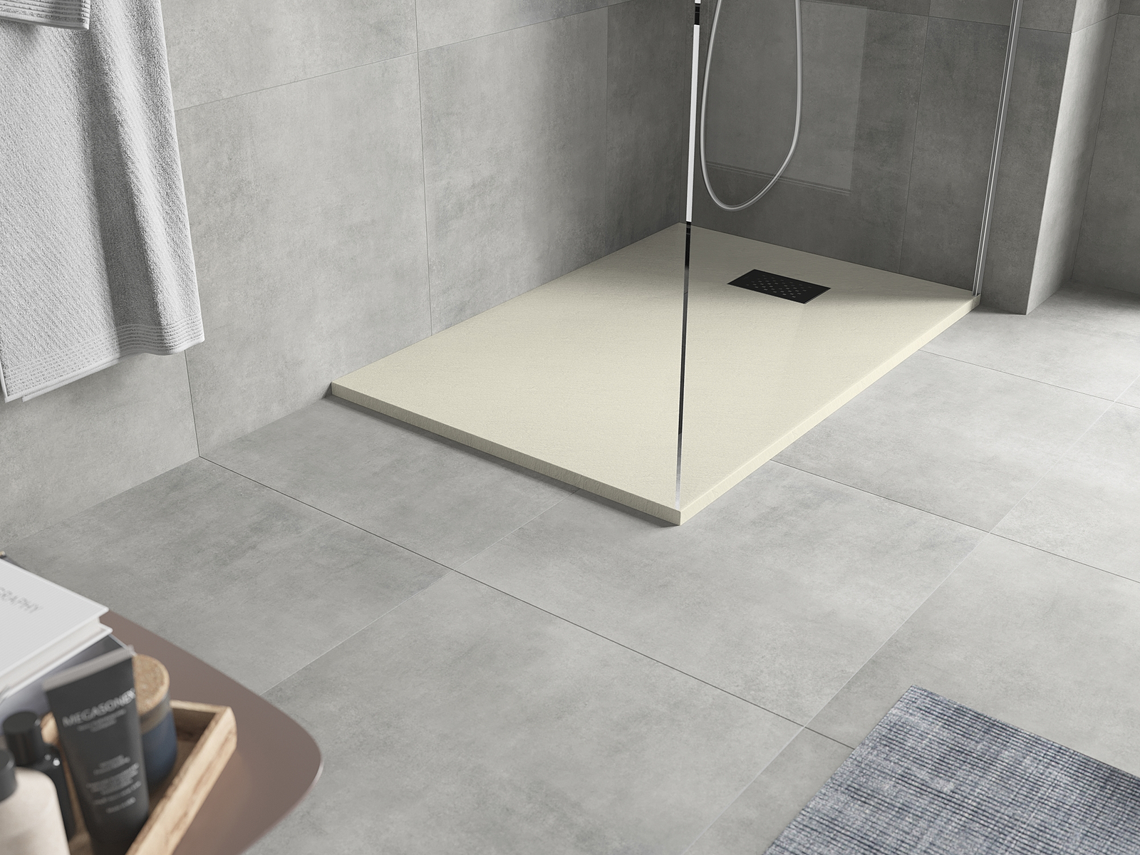 Dušo padėklo paviršius savo struktūra primena akmenį. Tai unikalus natūralios išvaizdos ir modernios vidaus erdvės išdėstymo derinys. Suteikia charakterį, pabrėžia estetiką ir eleganciją vonios kambario dizainui bei žavi savo forma.