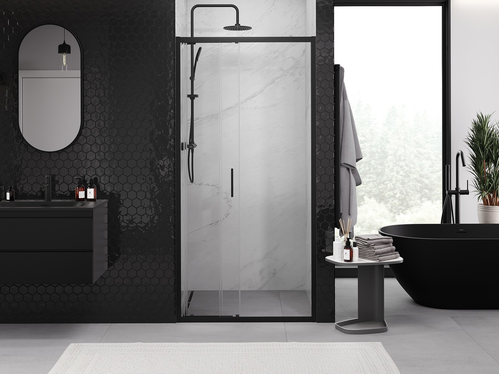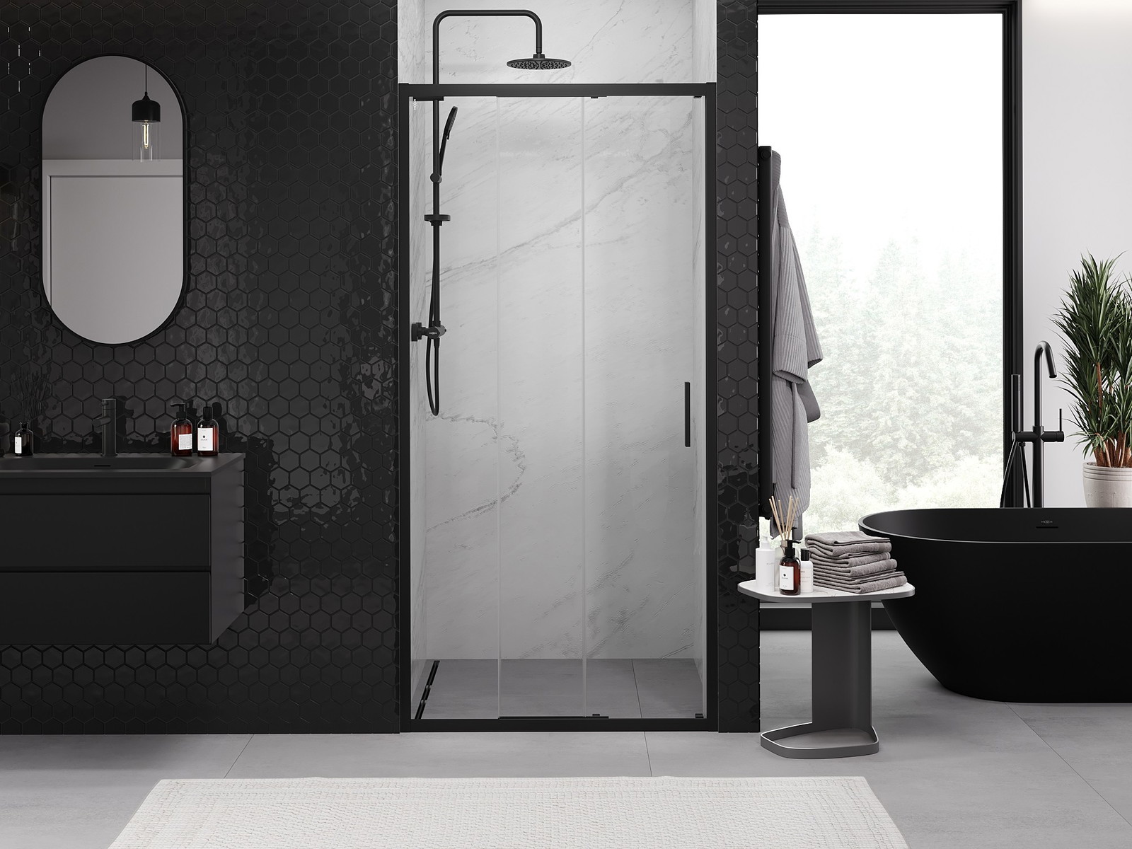 Mexen Exo-3S stiklinės stumdomos dušo durys 75 cm, skaidrios, juodos - 8153-075-000-70-00
