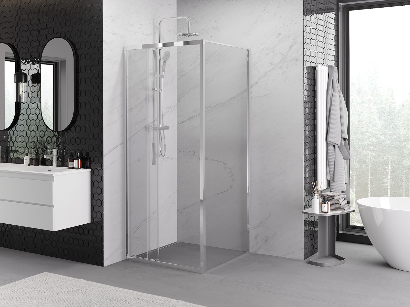 Mexen Exo stumdoma dušo kabina 85 x 85 cm, skaidri, chromas - 8153-085-085-01-00