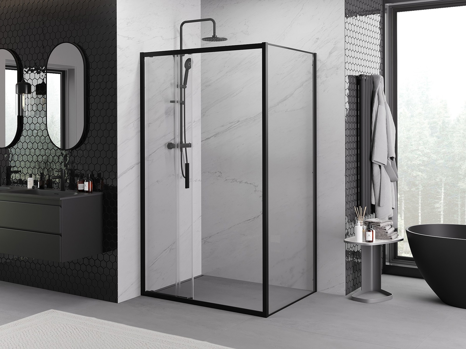 Mexen Rio kvadratinė dušo kabina 90 x 90 cm, skaidri, juoda - 860-090-090-70-00