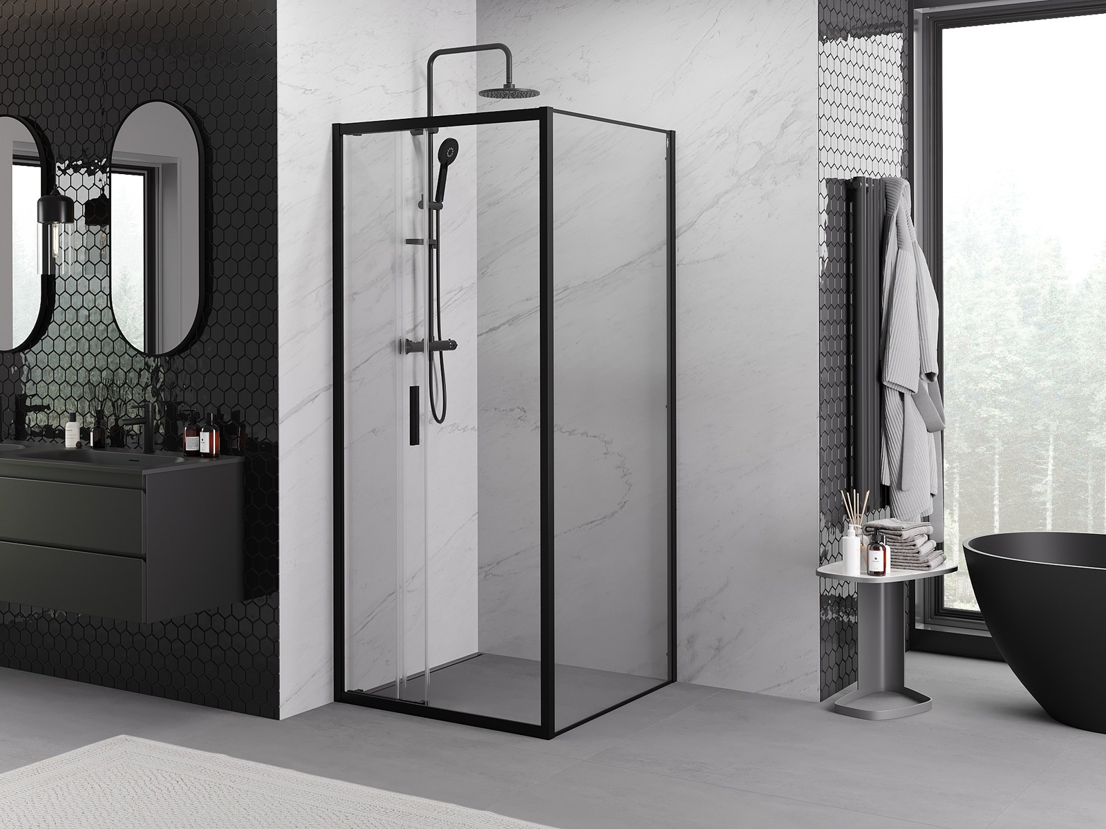 Mexen Exo stumdomas dušo kabina 85 x 85 cm, skaidrus, juodas - 8153-085-085-70-00