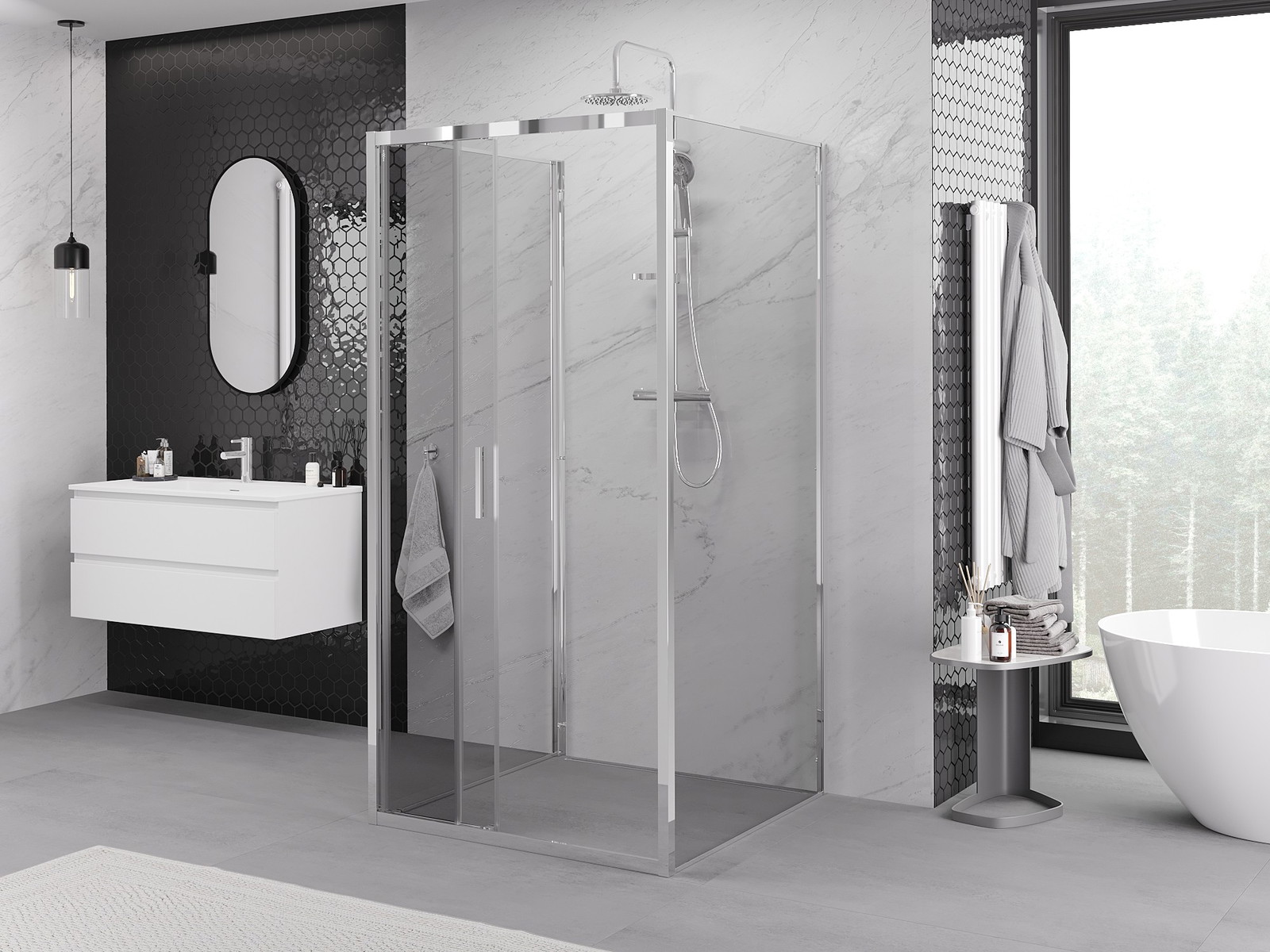 Mexen Exo-3S dušo kabina 3-sienų slankiojančios 80 x 80 cm, skaidrios, chromuotos - 8153-080-080-01-00-3S