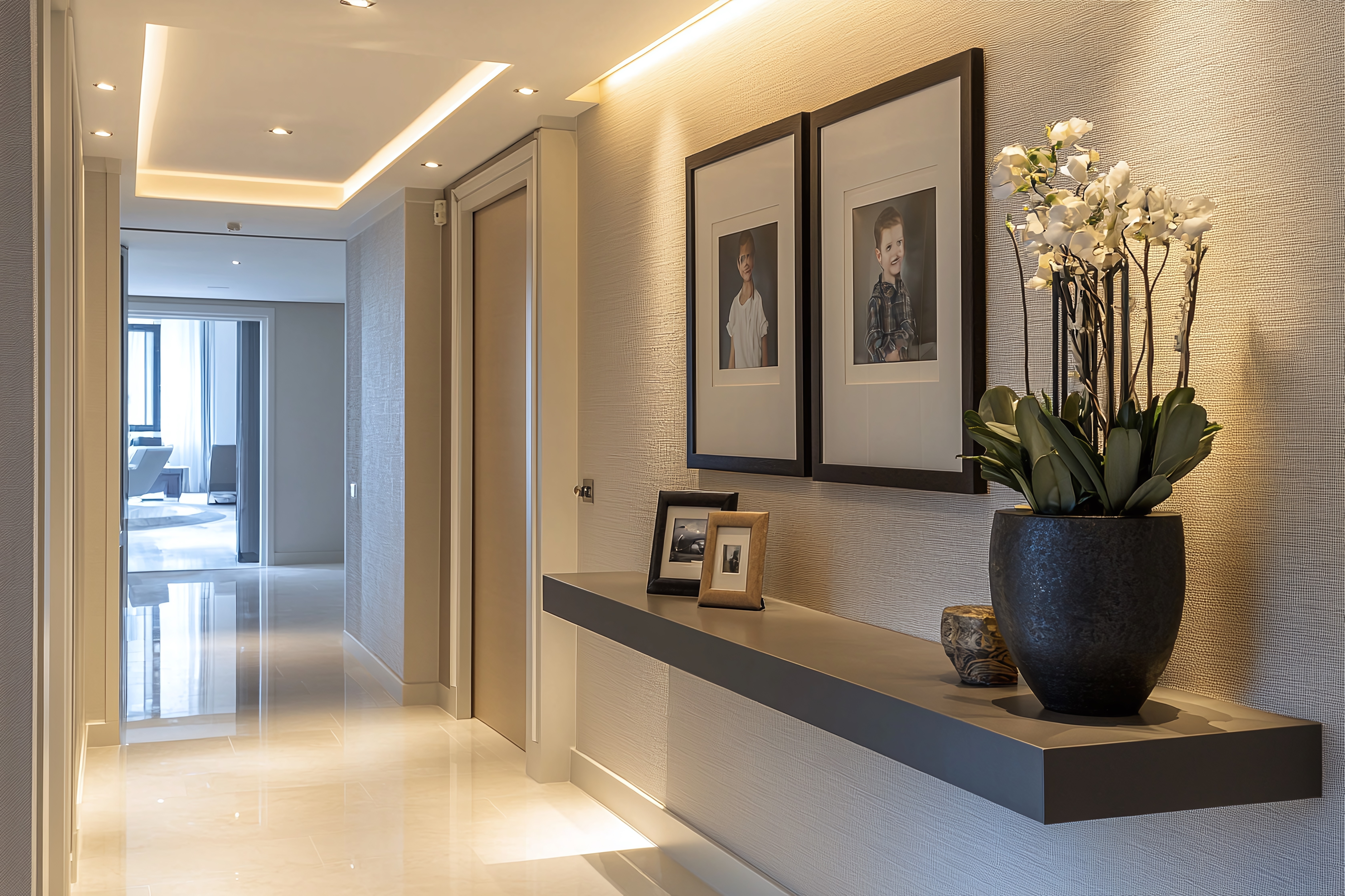 Elegantiškas koridoriaus apšvietimas